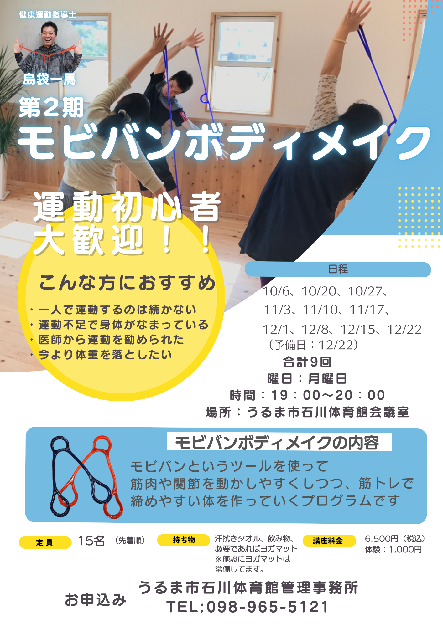 また10月からうるま市の石川体育館でモビバンというツールを使ったモビバンボディメイクという講座もスタートします。