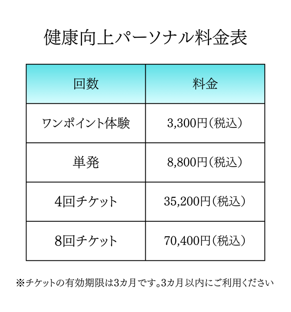 「痛み改善・予防」のパーソナル整体です。
