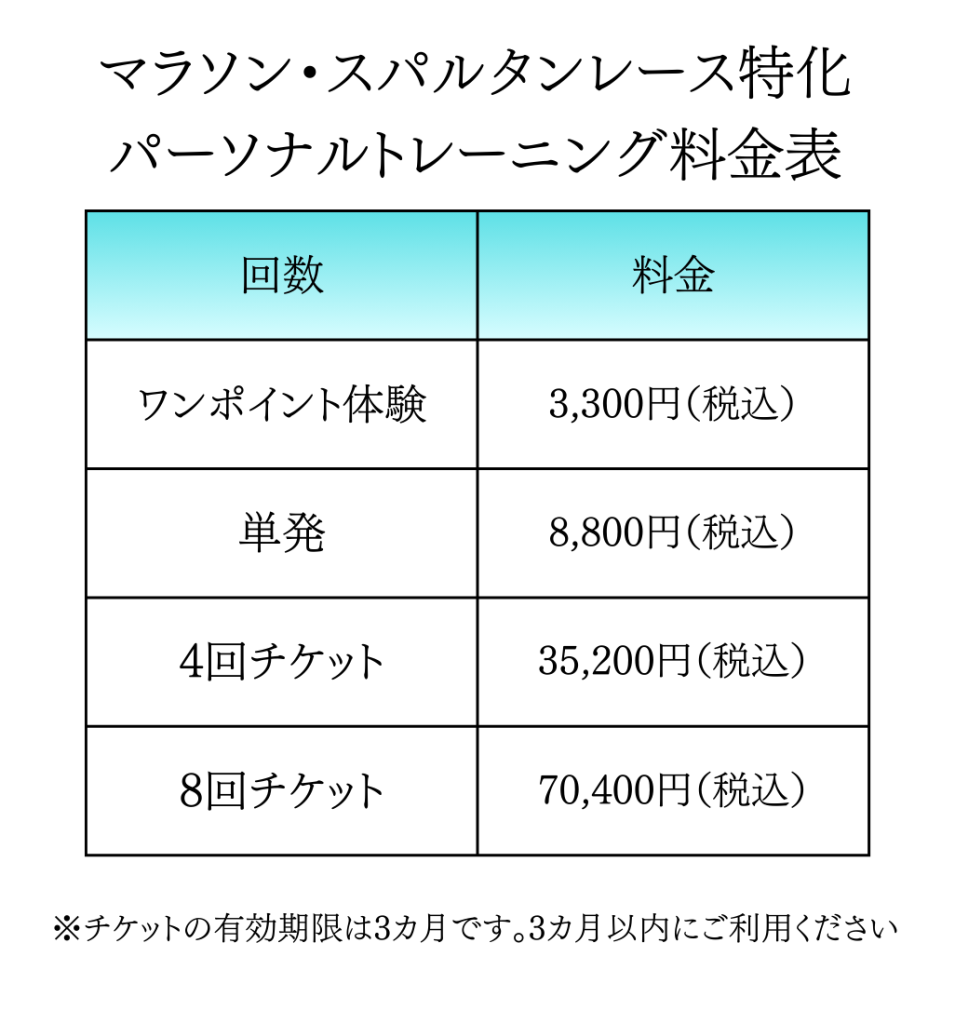 スピードやタイムを速くすることではなく、まずは完走を目指している方はお気軽にご相談ください。