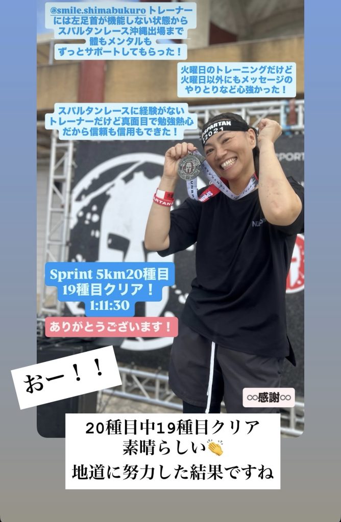 先月、11/15(土)に行われましたスパルタンレース沖縄に私のパーソナルを受けているお客様が出場したのですが